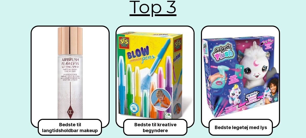 Det kan lyde banalt, men jeg ser ofte forveksling online. Spar dig selv for fejlkøb: maler-airbrush = trykluft + maling; hår-“airbrush” = varme + børste.