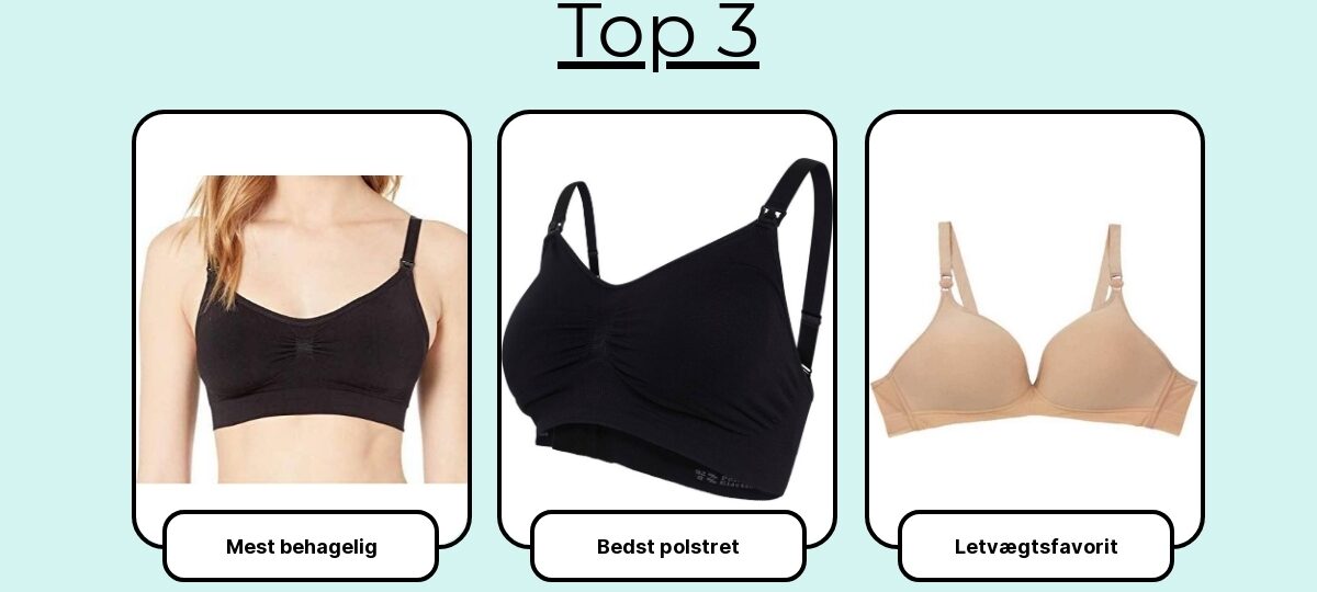 Her er de 7 bedste ammebh’er lige nu – fra sømløse hverdagsfavoritter til mere formfaste modeller – så du kan amme trygt, diskret og komfortabelt, uanset hvor du er.