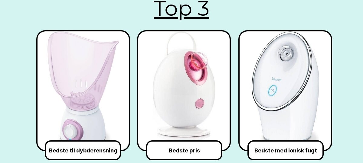 Bedste til sensitiv hud: En model med fin, køligere dampstråle, god afstandsjustering og kortere session presets (fx 5–8 min). Stabil, blid damp uden “sprøjt” er nøglen her.