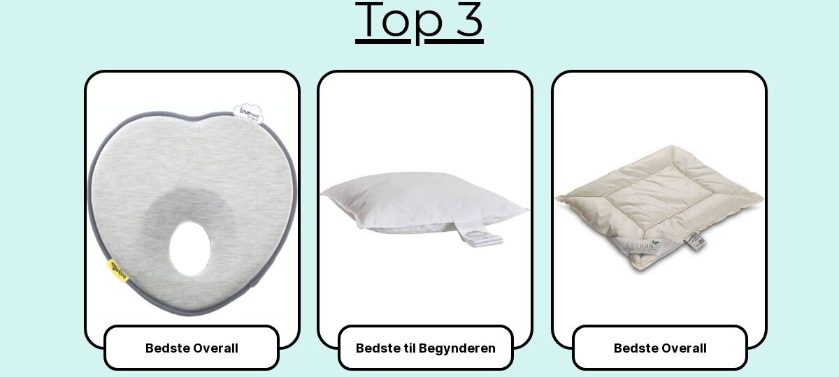 Her er de 7 bedste babypuder, jeg trygt kan anbefale. Husk altid at følge Sundhedsstyrelsens retningslinjer for sikker søvn og brug først pude, når din sundhedsplejerske anbefaler det.