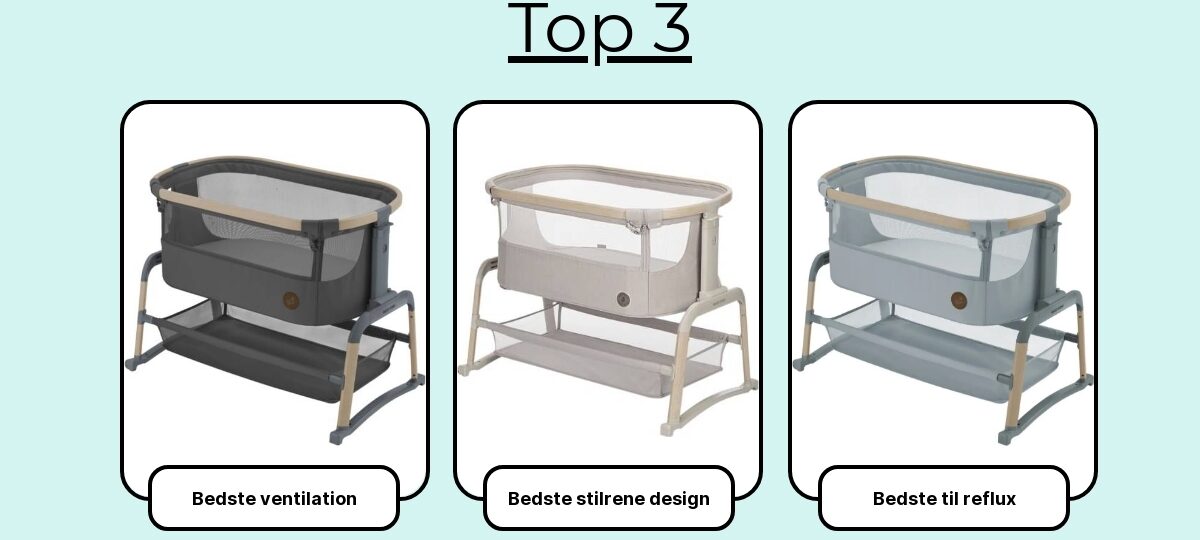 Her får du mine 7 favoritter: modellerne der holder baby tæt og sikkert, gør natteamninger nemmere og passer ind i hverdagen – uanset om du har et lille soveværelse, er i gang med kejsersnit-restitution eller bare vil have ro i natten fra første dag.