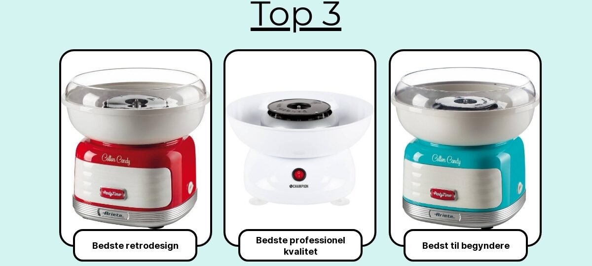 Jeg afviser maskiner, der brænder sukkeret ved lav belastning, sprøjter tråde ukontrolleret ud af skålen, eller hvor varmespiralen ikke kan holde stabil temperatur. Det lyder hårdt – men det er præcis derfor listen reelt sparer dig tid, penge og ærgrelser.
