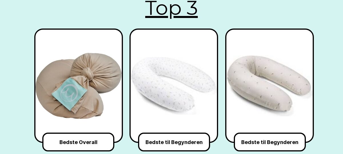 1) Bedst samlet: En U-form med medium-fast fyld og aftageligt, åndbart betræk. Den giver 360° støtte, stabiliserer ryggen og aflaster hofter – et sikkert valg for de fleste, især i 2. og 3. trimester.