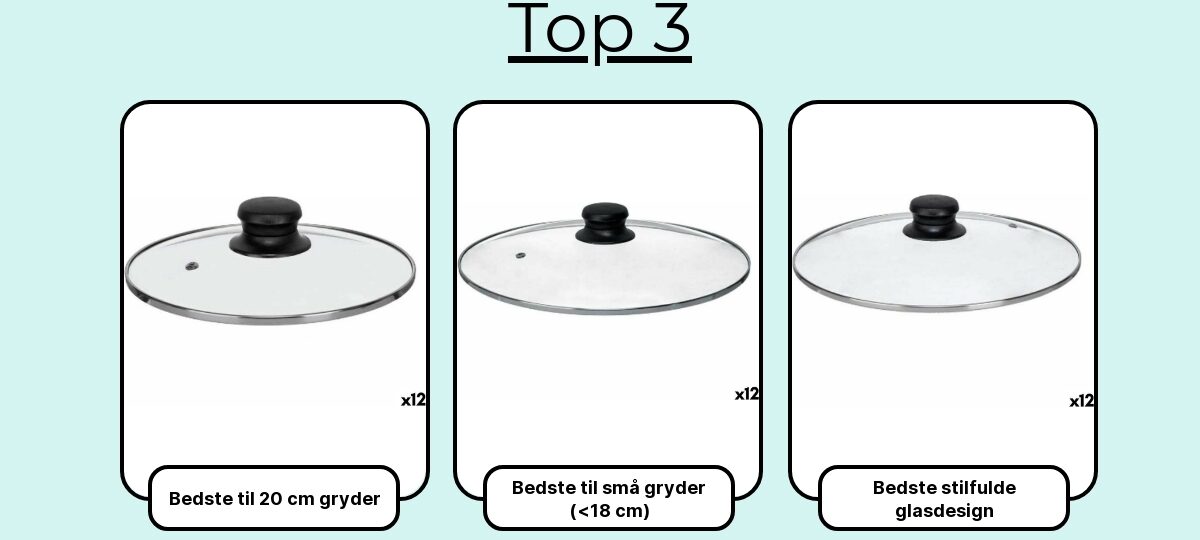 Bedste allround: Et hærdet glaslåg med lille damphul og bred stålring. Det giver visuel kontrol, rolig dampafgivelse og fungerer til 90% af hverdagsmadlavningen. Vælg den præcise diameter til dine 1–2 mest brugte gryder.