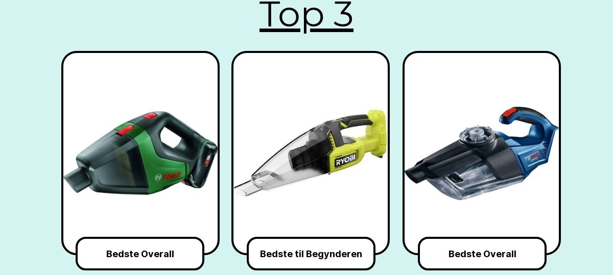 Hvilken håndstøvsuger er bedst i test? Det skifter med modeller og behov. Jeg kigger efter 70–100+ AW eller 15–20 kPa, tæt filtrering, relevant tilbehør og mindst 8 minutter stærk sugekraft på højeste trin. Vælg efter din primære opgave (køkken, bil, dyrehår) – ikke bare én samlet “vinder”.