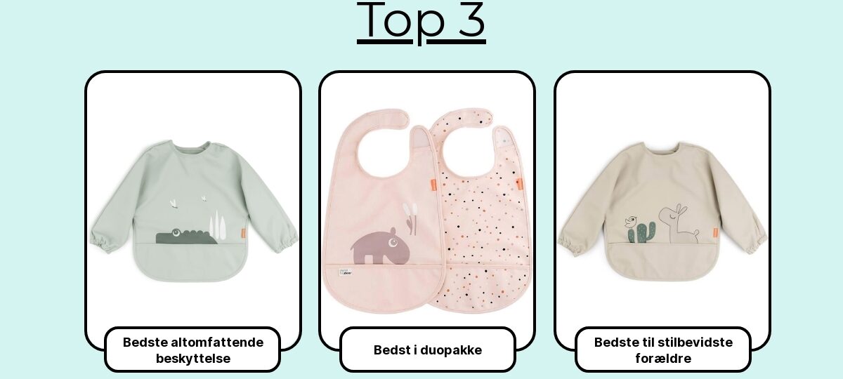Her er de 7 hagesmække, der klarede hverdagstesten bedst – dem, der gør oprydningen kortere, spisetiden hyggeligere og tøjet (næsten) pletfrit.