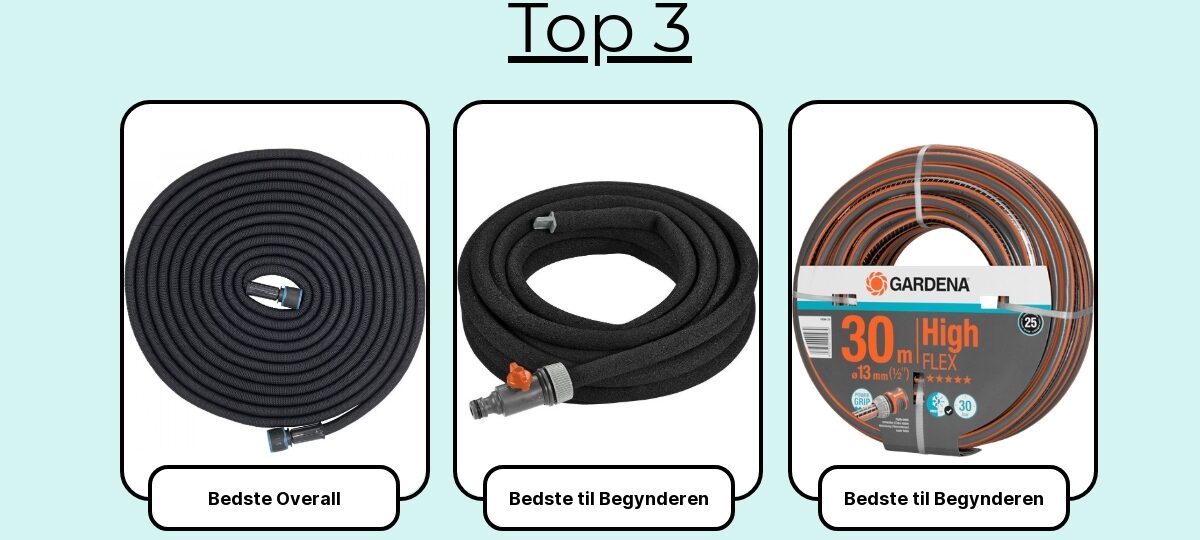 Mit mål er, at de 7 bedste repræsenterer forskellige behov: en klassisk “arbejdshest”, en let ekspanderende løsning, en slidstærk hybrid, en kraftig 3/4” til sprinkler, en kompakt reeltromle osv. På den måde kan du vælge den rigtige “bedste” til netop din have – ikke bare den, der klarede sig bedst i et laboratorie.