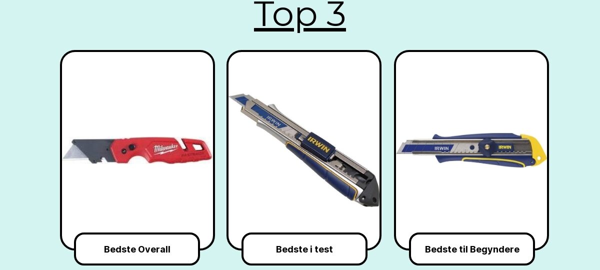 Over de seneste uger har jeg testet et bredt felt af modeller: 9 mm og 18 mm snap-off, skalpel-typer til mikronøjagtige detaljer og tunge “box cutters” til rå opgaver – både med stål- og keramiske blade. Jeg har vurderet skæreevne, præcision, ergonomi over lange sessioner, sikkerhed (auto-/skruelåse) og hvor nemt bladet skiftes uden drama.