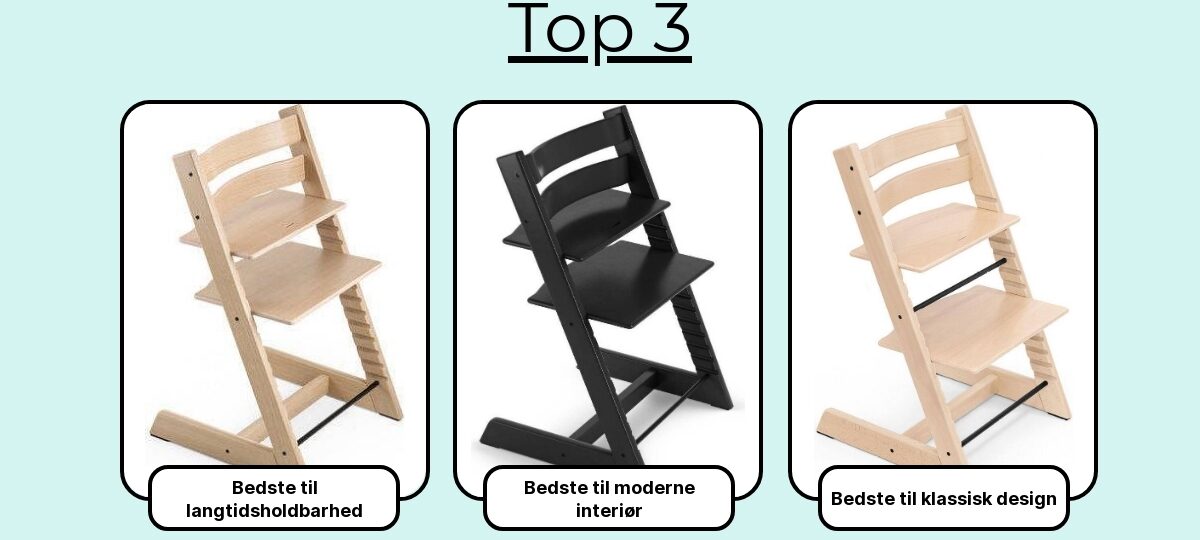 Jeg har haft Cybex Lemo 4-in-1 stående i stuen i flere måneder, og jeg lover: den bliver ikke kedelig. Jeg har leget med alt fra nyfødt-nestet til læringstårn, og den første gang jeg fik en nyfødt til bordet, var det som at få en ekstra hænder. Den fleksible ramme og de enkelte justeringer med drejeknapper er virkelig en gave — særligt når man står alene med tre små og en travl aften. I babyfunktionen føles nestet trygt nok til et kort døgn, og det er rart at kunne holde barnet tæt uden at skulle flytte hele stolen. Når der er tid til læringstån, bliver Leemo en trofast følgesvend ved bordet: barnet får sin plads, og voksenbordet kan fortsætte uden at skifte stol. Den aftagelige bakke er nem at afvaske, og muligheden for at køre stolen helt tæt til bordet gør måltiderne mere inkluderende. Sammenlignet med Stokke Tripp Trapp har Lemo en mere moderne tilgang: lettere vægt, hjul og én-hånds justering af højde og dybde. Tripp Trapp står stærkt i robusthed og vægtkapacitet, men Lemo vinder på glidefladen og den fleksible anvendelse fra nyfødt til voksen i én stol. Jeg elsker, hvor hurtigt jeg kan flytte den mellem køkken- og spisepladsen uden at skille den ad. Hvis dit hjem prioriterer nem justering, slankt design og bevægelighed uden at gå på kompromis med funktion, er Cybex Lemo 4-i-1 et sikkert køb. Hvis du ønsker en stol, der vokser mere med barnet i årene, kan Tripp Trapp stadig være relevants. Fordele: – Énhånds justering af højde og dybde – Letvægt med indbyggede hjul til nem bevægelse – Fire funktioner i én stol (nyfødt til voksen) – Let rengøring og aftagelig bakke – Slankt, moderne design, der passer i små hjem Ulemper: – Tray er mindre, særligt hvis to stole står ved siden af bordet – Vægten/kapaciteten ligger lavere end nogle “voksen-stole” modeller – Ikke den mest “rustikke” for langsigtet, teglsten-stabil følelse sammenlignet med træmodeller#6 Stokke Tripp Trapp Chair Warm Brown – Bedste til hyggelig atmosfære