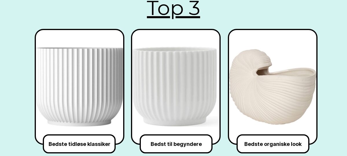 Skal det være en let sag til altanen, en tung klassiker ved hoveddøren eller en vinterstærk favorit? Rul ned og find krukken, der passer perfekt til din plante – og din stil.
