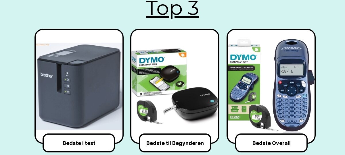 Jeg troede ærligt, at “en labelmaskine er vel bare en labelmaskine” – indtil jeg satte syv af de mest populære modeller op side om side på mit bord og begyndte at printe alt i mit hjem og værksted. Kasser, kabler, krydderiglas, flyttekasser – you name it. Kaos blev til orden (og ja, jeg fandt endelig den rigtige oplader til mit kamera).