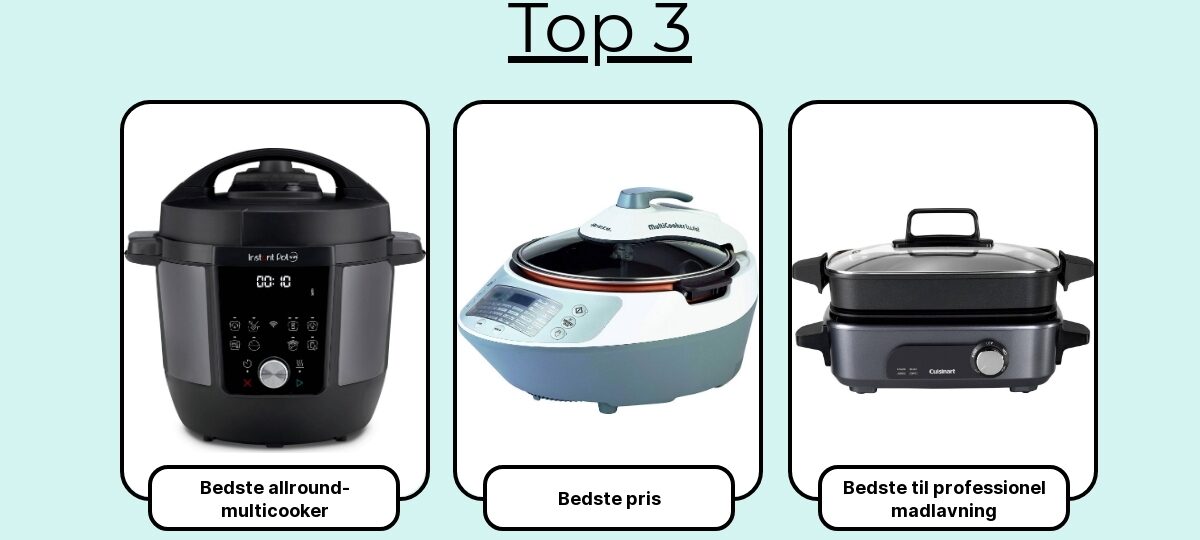 Her får du mine 7 favoritter – fra pladsbesparende modeller til familien, til nørden der vil have præcis temperaturstyring og sous-vide. Kort sagt: de multicookere, der faktisk gør hverdagen lettere, og som jeg trygt ville anbefale til både begyndere og kræsne hjemmekokke.