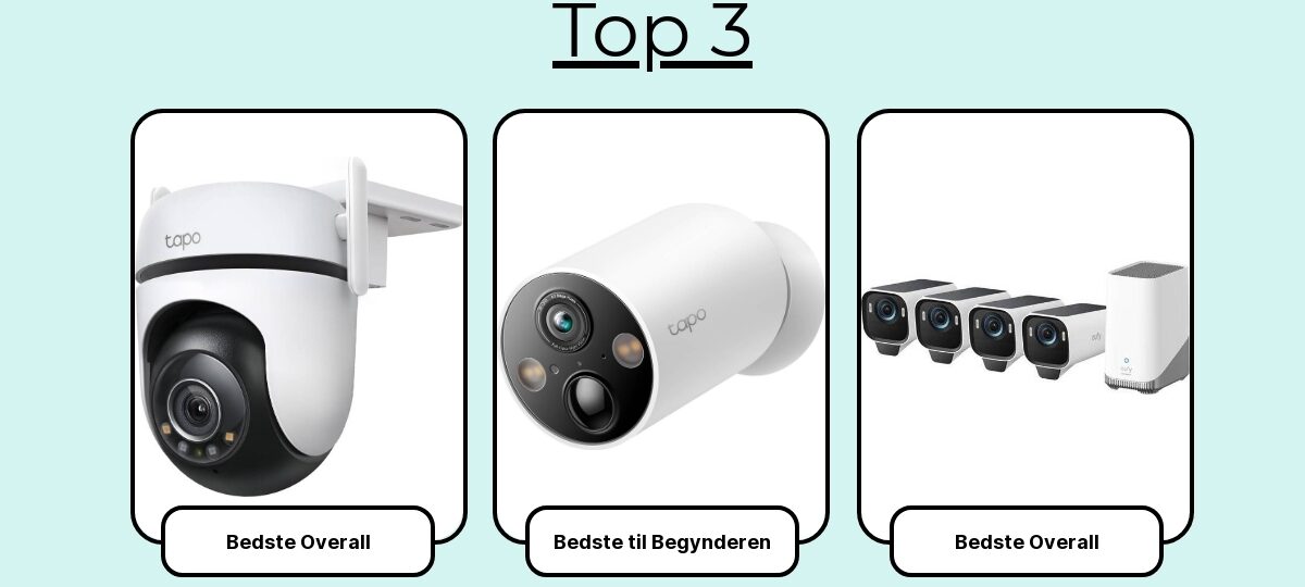 De seneste uger har jeg monteret, finjusteret og benhårdt testet syv forskellige overvågningskameraer på murværk, træværk og i vindueskarme. Jeg har sammenlignet IR med nattesyn i farver (spotlight), målt forsinkelse fra bevægelse til notifikation, skåret aktivitetszoner til, talt gennem tovejskommunikation, udsat dem for regn og blæst, set batteriprocenter styrtdykke i frost – og holdt det hele op mod PoE-modellernes stabile drift.