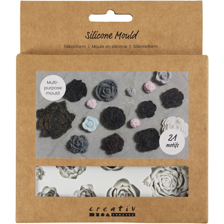 Med den fleksible silikoneform kan du nemt støbe smukke og detaljerede motiver. Perfekt til stearin, sæbe, resin, gips, smykkeler og Silk Clay®. Tåler 130 grader i ovn
