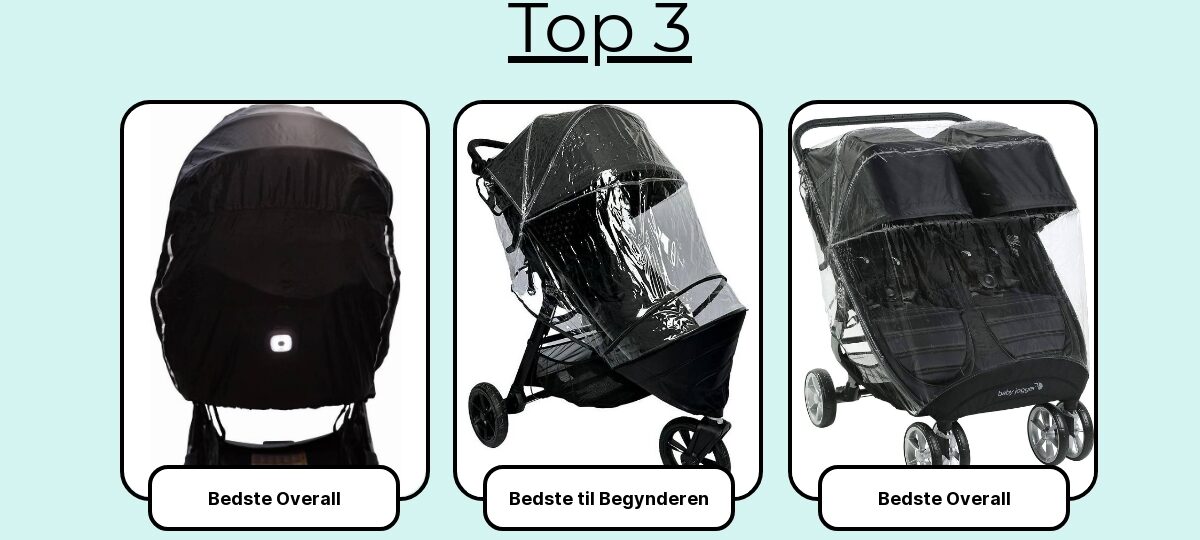 Her er min håndplukkede top 7 over de bedste regnslag til barnevogne – udvalgt på pasform, tæthed, holdbarhed og hvor hurtigt de kommer på, når skyerne for alvor åbner sig.
