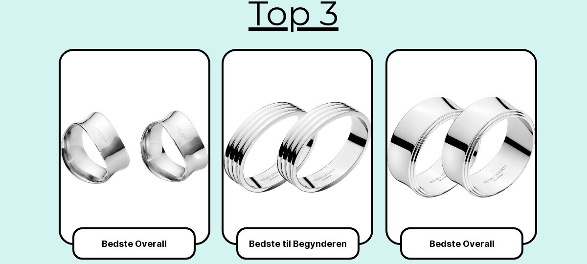 Sammenlignet med tungere sølv- eller sølvbelagte ringe vinder Georg Jensen på vedligeholdelse — et hurtigt håndopvask og et poleringsklæde, så er de som nye. Det eneste jeg savnede i testen var lidt bedre modstand mod fingeraftryk og at de kan være lidt glatte på meget tynde servietter.