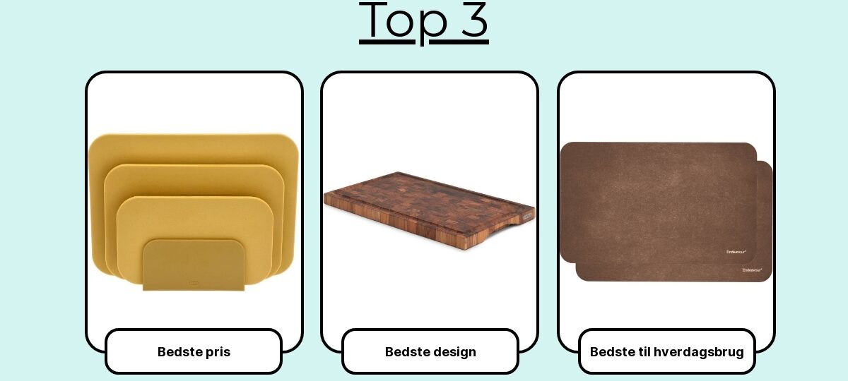 Her er de 7 skærebrætter, der klarede sig bedst – uanset om du vil have et robust hverdagsbræt, et elegant serveringsbræt eller en knivskånende arbejdsplads til seriøs madlavning.