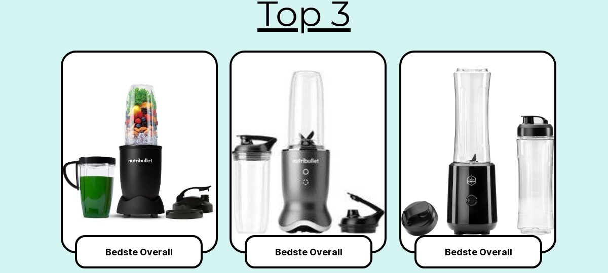 NutriBullet Pro 900 – bedst budget til én portion: Den er simpel, kompakt og leverer en fuldt drikkeklar smoothie på under et minut, hvis du bruger nok væske og forskærer ingredienser en smule. Den kan ikke alt, men til daglige frugtsmoothies og basic grønt er den fremragende for pengene, og kop‑til‑låg‑løsningen er praktisk.
