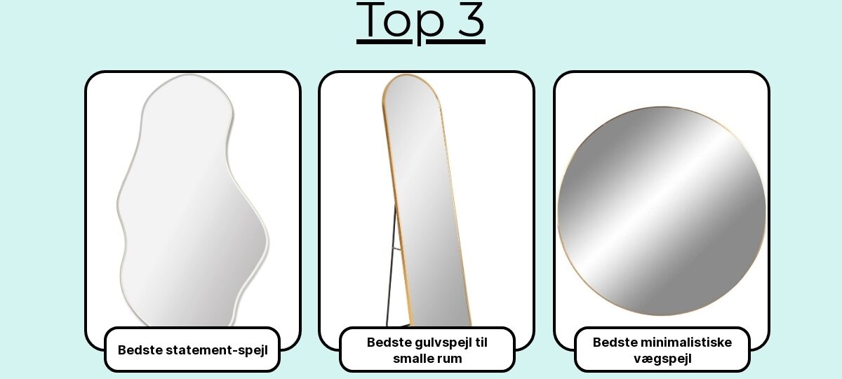Her er de 7 bedste spejle, jeg uden tøven ville hænge op hjemme: til entré, bad, makeup og fuldkropsblik – i sort stål, messing eller træ – udvalgt for deres klare gengivelse, smarte detaljer og ærlige værdi for pengene.