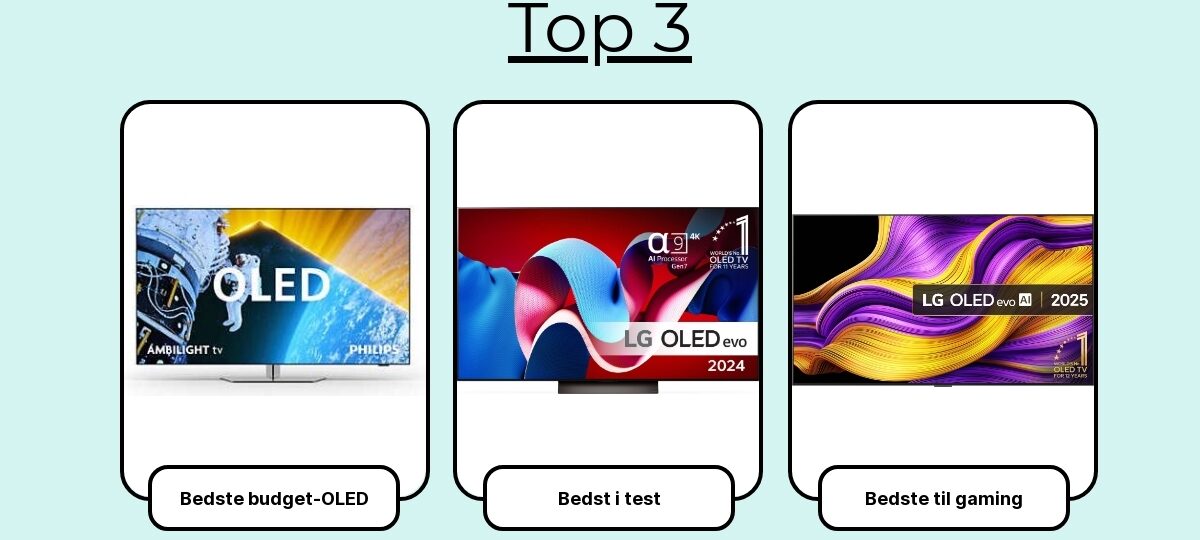 - Ikke lige så lysstærk som top QLED’er til meget lyse rum