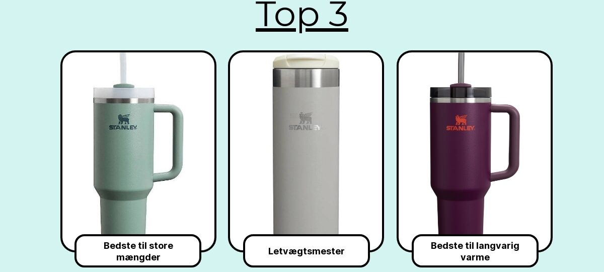 Sammenlignet med Yeti og Hydro Flask føles Stanley mere “hverdags-rå” og ofte billigere i prisen for samme isolering. Yeti er lidt smallere og lettere at håndtere i bilen; Hydro Flask har bred munding til rengøring. Flowstate-låget er smart, men har flere dele at rengøre end en simpel skrue-låg.