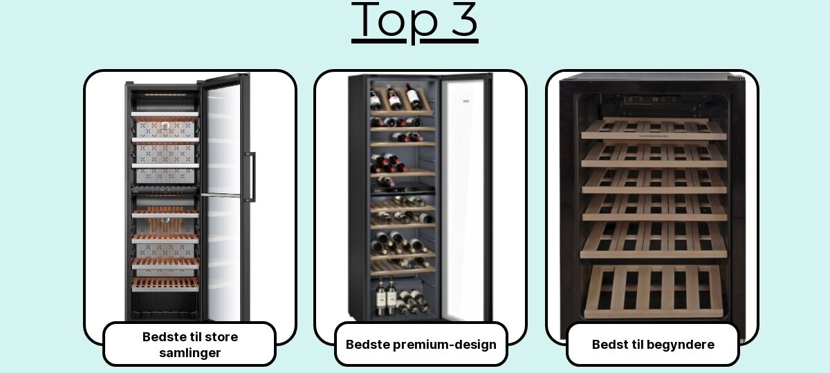 Mit tommelfingerregn: Drikker du 1–2 flasker om ugen og har begrænset plads, så start med en topklasse bordkøler og en god kølemanchet. Har du allerede en samling på 12+ flasker, eller vil du servere rød og hvid samtidig ved rette temperaturer, så vælg et vinkøleskab – gerne med to zoner.